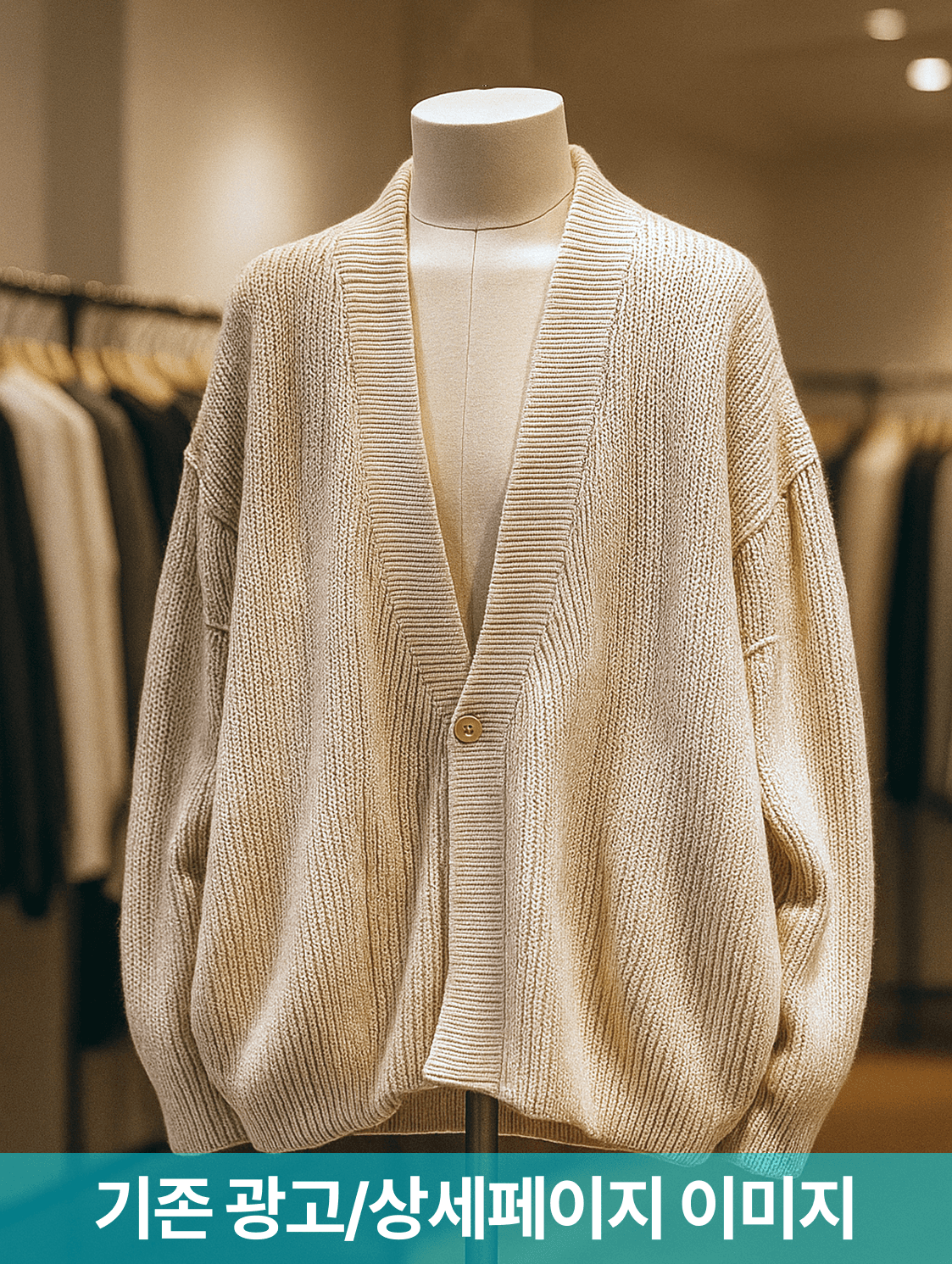 이번 프로젝트는 남성 고객층을 타깃으로 한 오버핏 가디건 상세페이지 및 인스타그램 광고 이미지 제작 사례입니다.