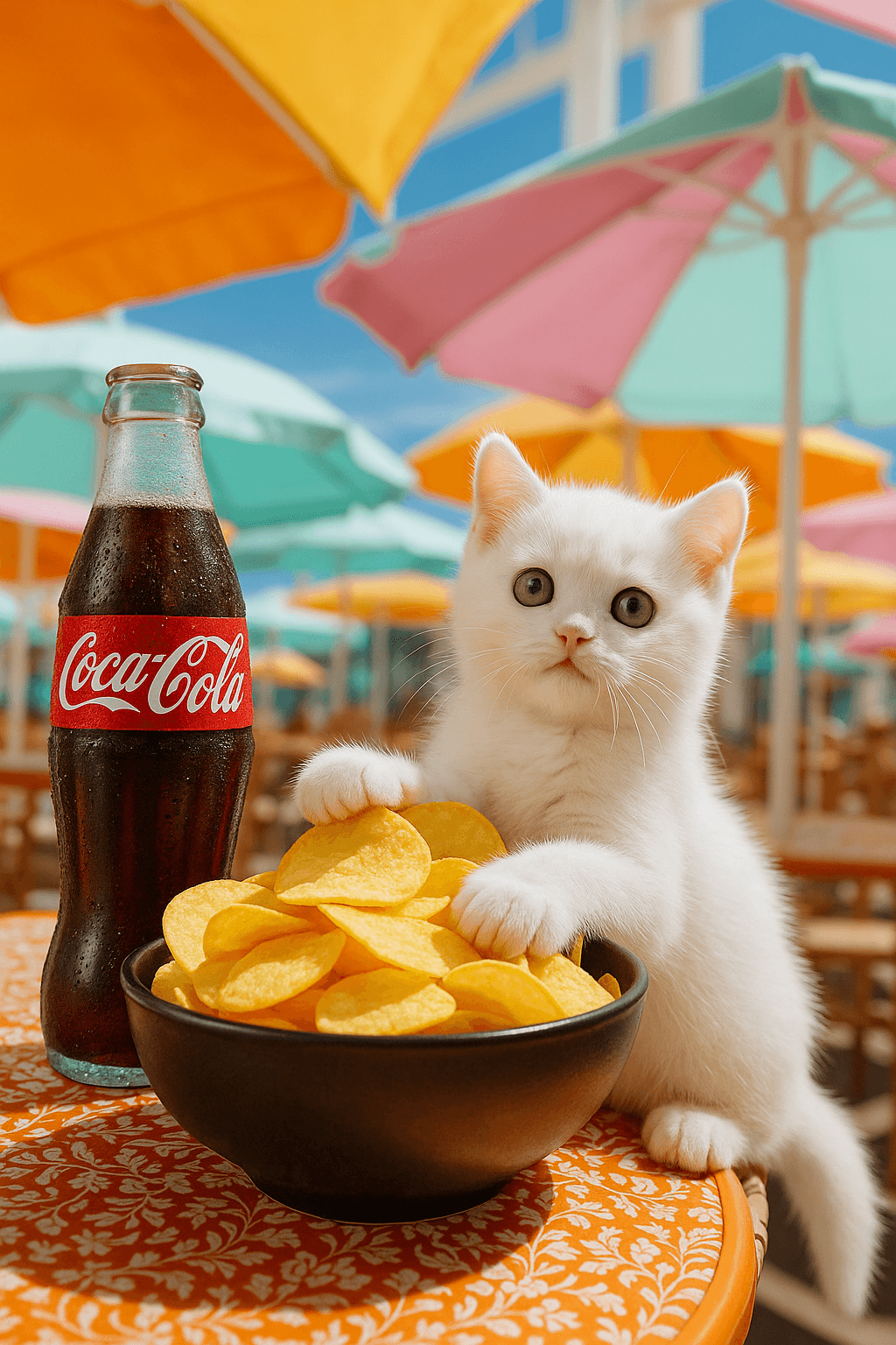 ④ 귀여운 고양이와 콜라 연출 → Z세대 타깃의 감성 마케팅 포인트 강화